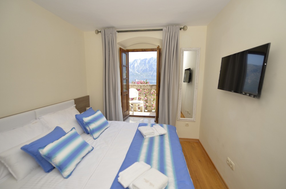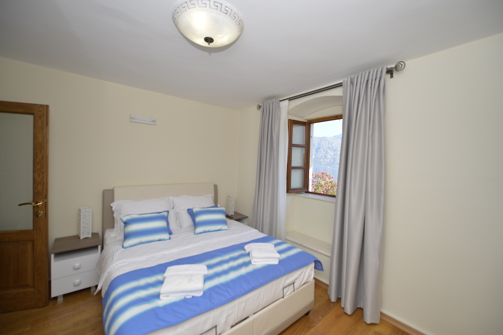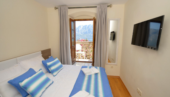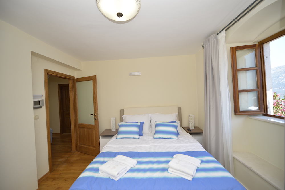 - Spavaća soba 1 sa pogledom na more: 1 veliki bračni krevet, ormar za garderobu, 2 noćna ormarića, 2 stolne lampe, LCD TV sa satelitskim kanalima, pod -hrastov parket, balkon sa pogledom na more.